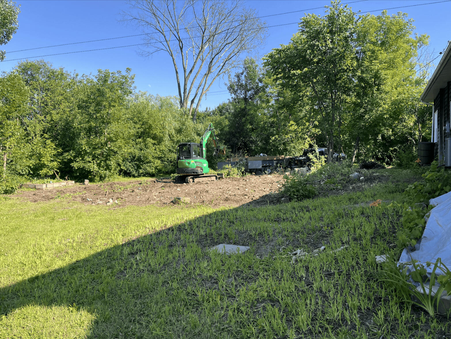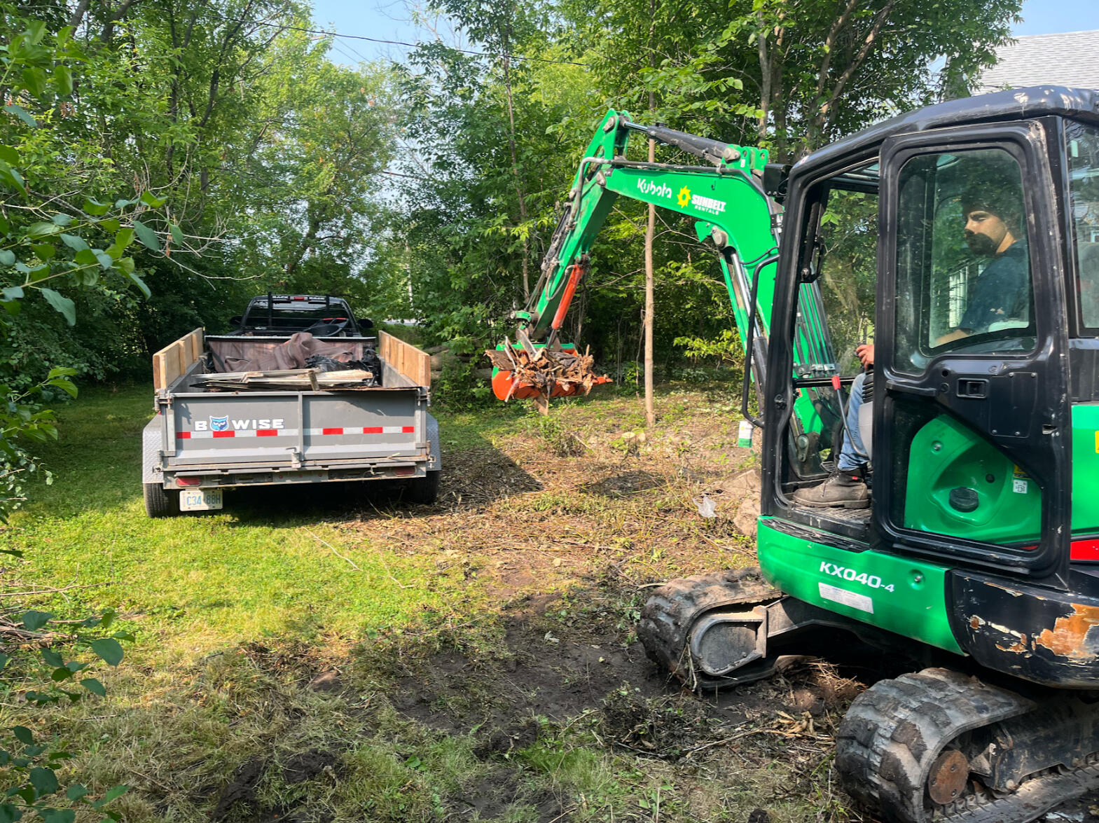 Full landscape jobsite prep Clearing and leveling land Demolition and removal